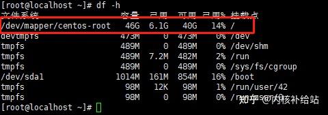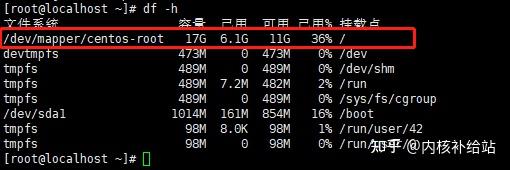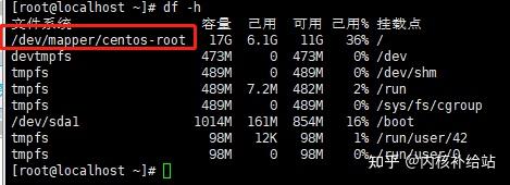 查看当前磁盘情况并记下需要扩展的文件系统名,我这里因为要扩展根目录,所以我记下的是 /dev/mapper/centos-root